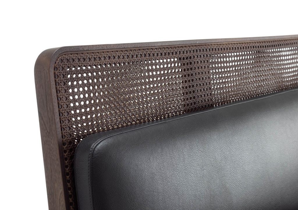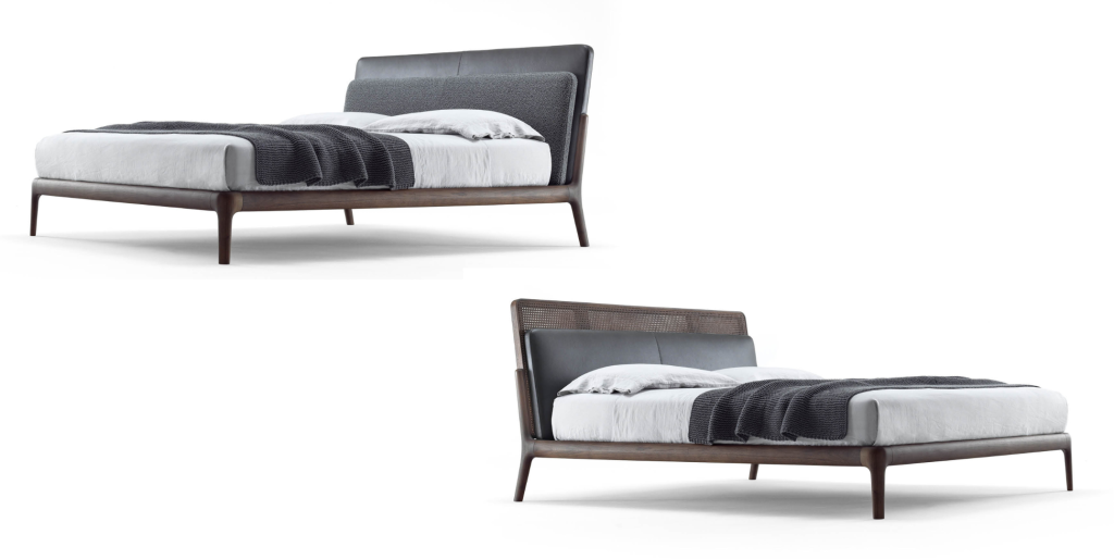 La testata può essere configurata in pelle, tessuto o in combinazione, mentre nella versione East Side diventa protagonista la paglia di Vienna, omaggio alla tradizione reinterpretata in chiave contemporanea.